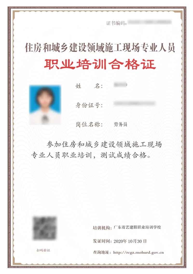 测试合格的考生经行业主管部门审核确认后将获得《住房和城乡建设领域施工现场专业人员职业培训合格证》(电子证),该证书在全国住房和城乡建设领域予以认可。